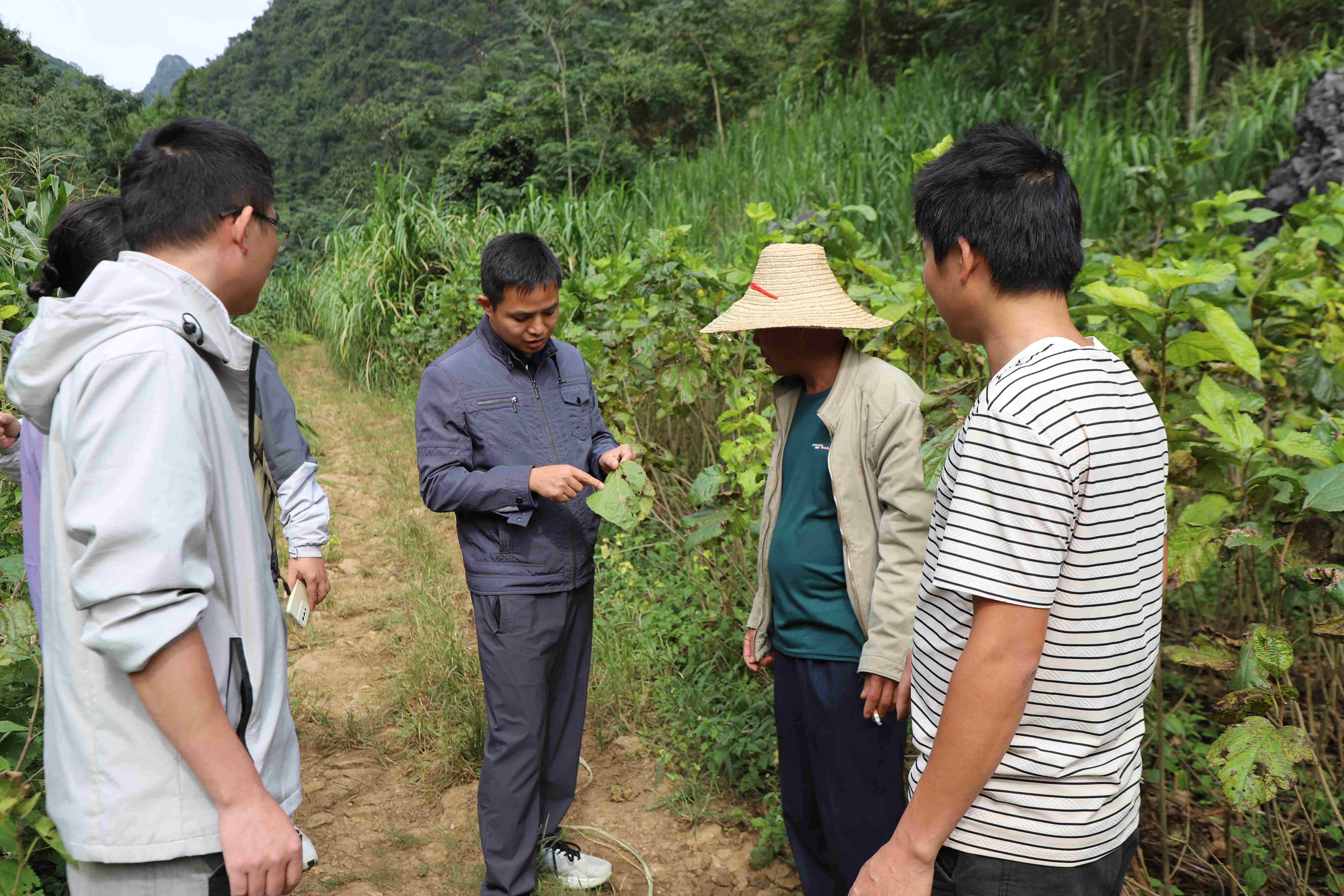 在加龍村活動現(xiàn)場,河池市農(nóng)科所向村民捐贈2500個方格蔟,專項支持蠶桑養(yǎng)殖。該批物資將直接助力農(nóng)戶用于提升蠶繭質(zhì)量與養(yǎng)殖效益,得到農(nóng)戶廣泛認可。捐贈結(jié)束后,專家團隊深入加平、加孟、巴芒等屯的桑樹種植地塊,實地查看土壤條件、桑樹長勢及病蟲害情況,針對農(nóng)戶關(guān)心的施肥管理、牛糞漚制使用、常見病害識別與防治等問題,進行現(xiàn)場示范與講解。